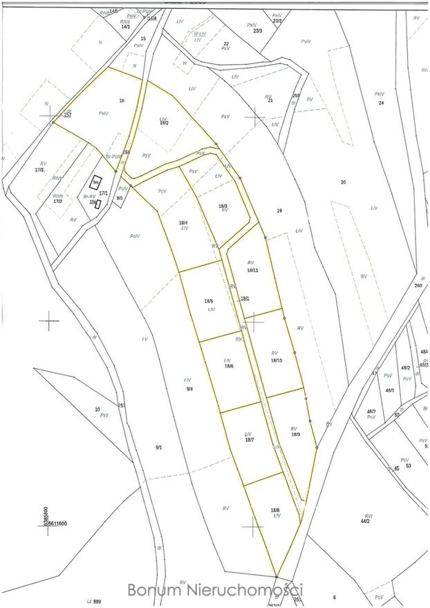Grunty oznaczone symbolami: PsIV, PsV, ŁIV, RV,